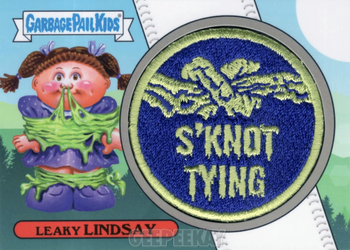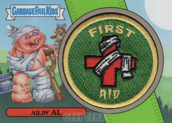 INFORMATION: For the Kids At Play Series there are a total of 10 different GPK Patch Cards (5 'a' and 5 'b'). These are similar to the 'Patch' cards from previous releases, and are much thicker than standard cards. The reason for the thickness is they include a unique swatch of fabric that contains a piece of fabric to mimic Merit Badges from Boy/Girl Scouts (...reminiscent of some of the sports cards Topps releases that include a portion of a jersey, etc.) To note, these Patch Cards are exclusive to Collector's Edition Hobby Boxes.