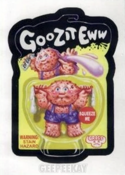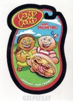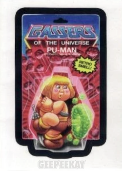 INFORMATION: The Wacky Package Playthings subset of Kids At Play featured some toy-themed mash-ups between Garbage Pail Kids characters and Wacky Package products, and were available 1:24 in Collector's Edition packs