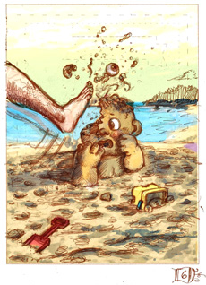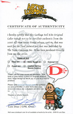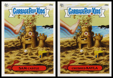 The COLOR ROUGH ART piece below was drawn by Luis Diaz for the All-New Series 6 Garbage Pail Kids. The concept ended up being changed drastically before it was printed for cards 28a Sam Castle and 28b Crushed Kayla. Unfortunately, the art director at Topps wished for the character to take on a more 'castle' look. If left like the concept, the card would have been one of the best in the series...if only.