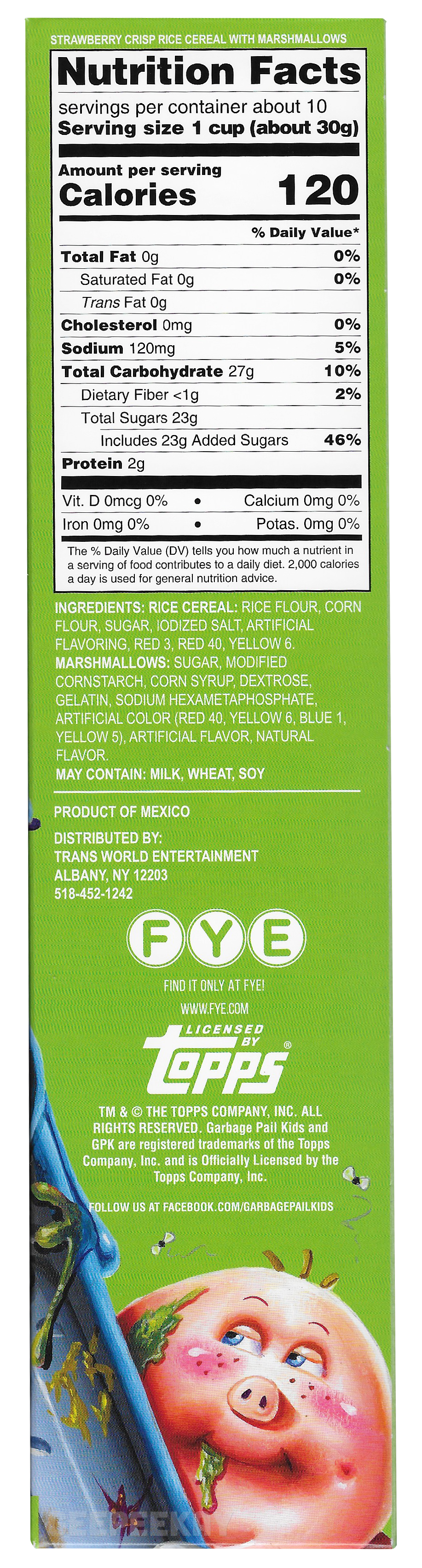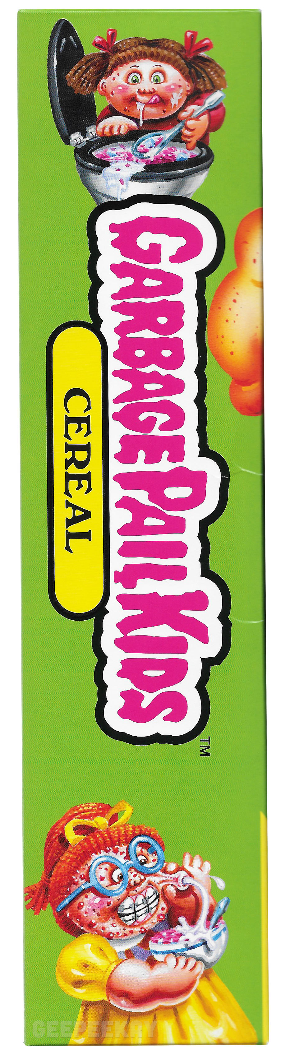 On October 2, 2020 FYE surprised collectors with a mini 3-pack of Garbage Pail Kids cereal! The 3-pack of cereal contained two brand new cereals, and a smaller version of the previously-released 'Adam Bomb' cereal.