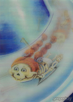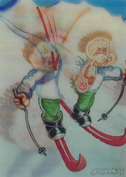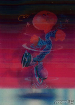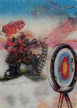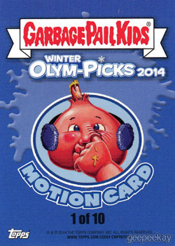 INFORMATION: This 10 card subset featured lenticular cards of the Olym-Picks Garbage Pail Kids Olym-Picks characters from the Base Set and were available in 1:12 packs. Additional artwork on the Motion cards was completed by Mark Pingitore