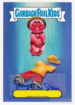 - INFORMATION: The above gallery displays samples of the various autograph cards for the Adam-Geddon set. This page is intended to serve as an example of what an Artist Autograph looks like to help collectors and their collections. The cards were limited to 25 of each character and were found in 1:168 Hobby/Retail/Collector's Edition packs