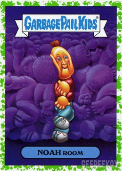 INFORMATION: Parallel cards for the Adam-Geddon Series feature the same artwork of the standard white border characters with a subtle change (border color). For this series Topps created a splotchy pattern and dubbed it 'spit' or 'puke'. This page is intended to serve as an overview of the parallels in the Series. Above are examples of the set/subsets...and below is detailed information about the parallels.