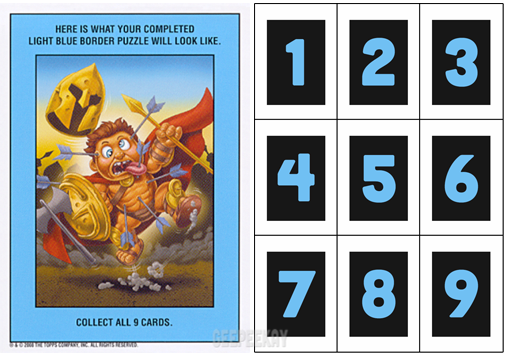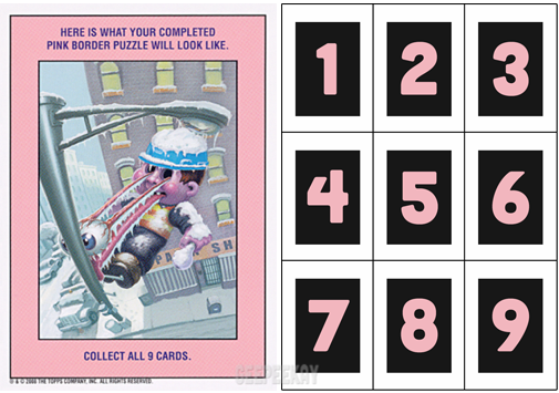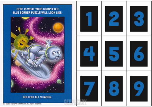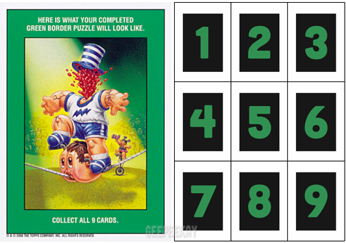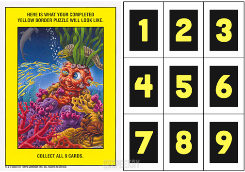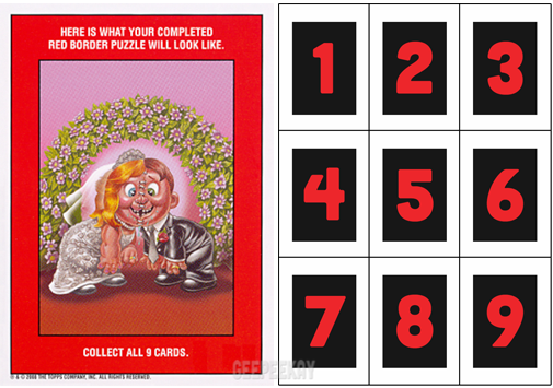 The completed Red Border Puzzle from All New Series 7 (above) is shown on the back of card 7a Drew Drool. To complete the Red Border Puzzle you will need the following nine cards: