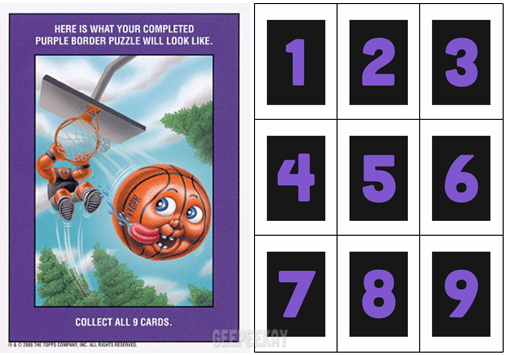The completed Purple Border Puzzle from All New Series 7 (above) is shown on the back of card 32b Cast Away Jay. To complete the Purple Border Puzzle you will need the following nine cards: