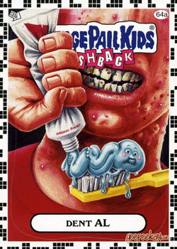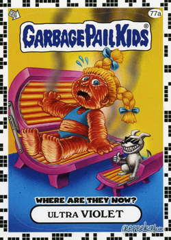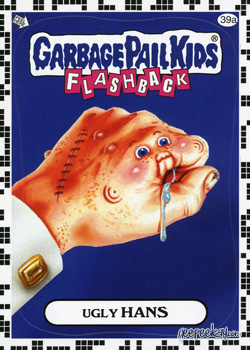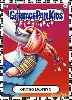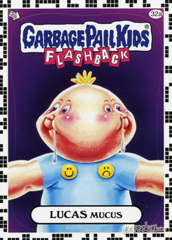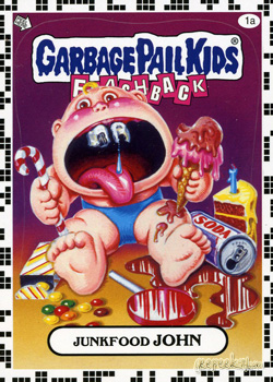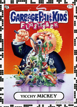 - INFORMATION: In what can only be described as one of the most unique errors in the history of Garbage Pail Kids, an entire set of 'a' stickers was mistakenly manufactured with a white checkered border as opposed to the yellow (or other chase set colors).