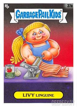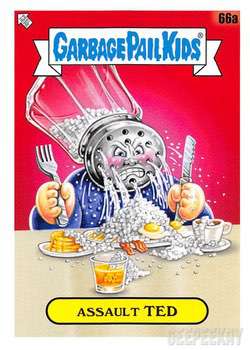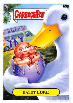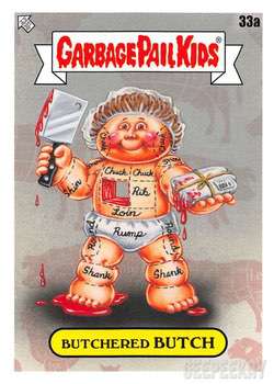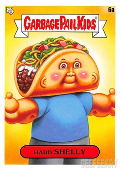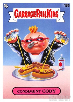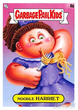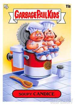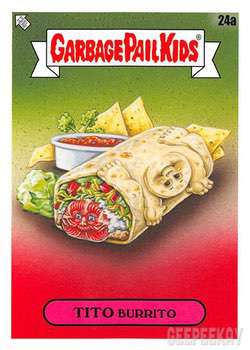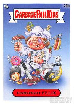 INFORMATION: The Food Fight release continued the trend of offering a large 'base set' as opposed to a handful of subsets. This massive 200 card base set features concepts and kids centered around food. All artwork for the base set was completed by Joe Simko, Brent Engstrom, Joe McWilliams, and David Gross