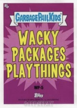 INFORMATION: The Wacky Package Playthings subset of Kids At Play featured some toy-themed mash-ups between Garbage Pail Kids characters and Wacky Package products, and were available 1:24 in Collector's Edition packs