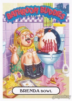 - INFORMATION: Although these two sets are not named in the traditional 'Bonus Card' format, the way they were distributed makes them extremely similar to previous series. The 6 card Gross Bears set features reprints of all the old artwork from Topps' Gross Bears Big Bad Buttons from the 80s and were found 3:Wal-Mart Blaster Box. The 6 card Bathroom Buddies set also featured reprints of old Topps' artwork from the 80s and were found 3:Target Blaster Box