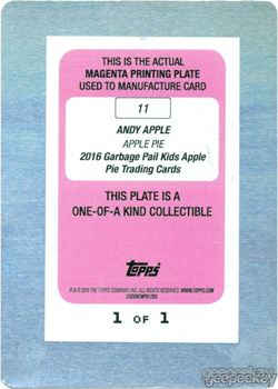 - INFORMATION: Printing Plates were some the most difficult items to obtain from the American As Apple Pie In Your Face Series. These rare items were inserted into 1:1536 Hobby/Retail packs, 1:746 Retail Jumbo Packs, or 1:241 Hobby Collector packs