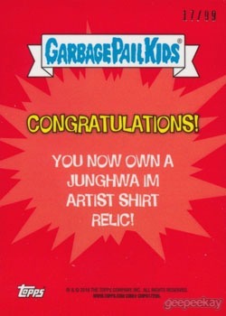 - INFORMATION: The above gallery displays samples of the various Artist Shirt Relic cards for the Apple Pie set. This page is intended to serve as an example of what an Artist Relic looks like to help collectors and their collections. There are a total of 6 artists who donated shirts for the cards, and they were limited to 99 of each artist. The cards were found in 1:61 Collector's Edition packs