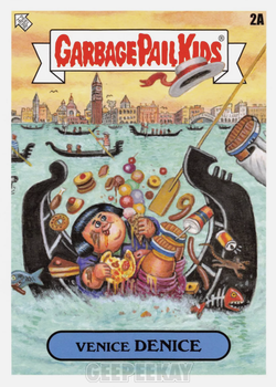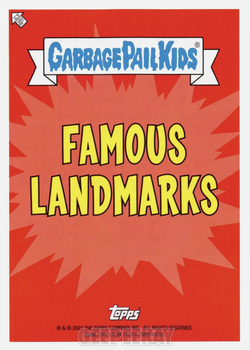 INFORMATION: The 'Famous Landmarks' subset features five pieces of new artwork from artist Tom Bunk. Each card in the 10 card subset was #/50, and featured depictions of famous landmarks around the world (with a GPK-twist). These cards were available in 1:1179 Retail Display packs