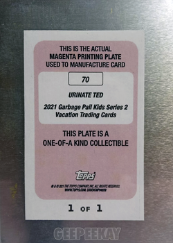 - INFORMATION: Printing Plates were some the most difficult items to obtain from the GPK Go on Vacation Series. These rare items were inserted into 1:1,697 Collector packs, 1:5,326 Retail Display Packs, or 1:5,502 Blaster packs