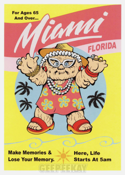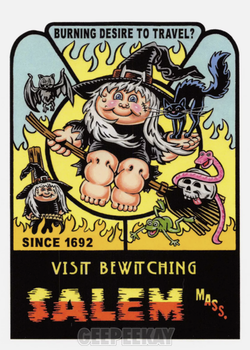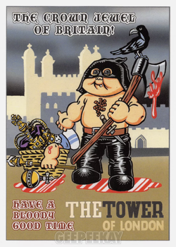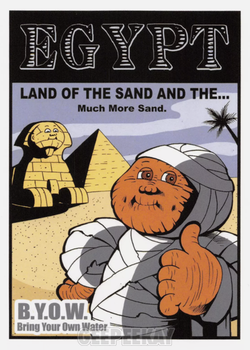 INFORMATION: The Travel Stickers subset of the Vacation series features parodies of travel posters where Original Series Garbage Pail Kids characters have traveled to popular travel destinations. They were available in 1:4 Blaster packs