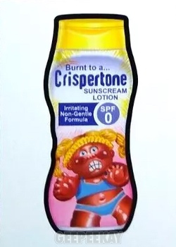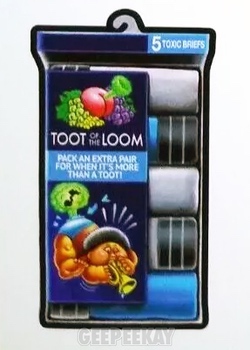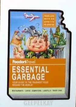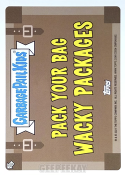 INFORMATION: As usual, Topps stuck a Wacky Packages subset into the Garbage Pail Kids release. For the Vacation set they went with popular travel items, and gave them a little GPK flavor. The 10 cards were randomly inserted in 1:24 Collector packs