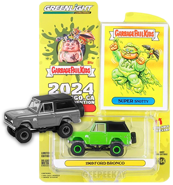 - At SDCC 2024 GL released an exclusive Ford Bronco. It was packaged similar to their regular releases but included SDCC text. There were two versions of this release: a Standard (Green) version, and a Chase (Grey) version