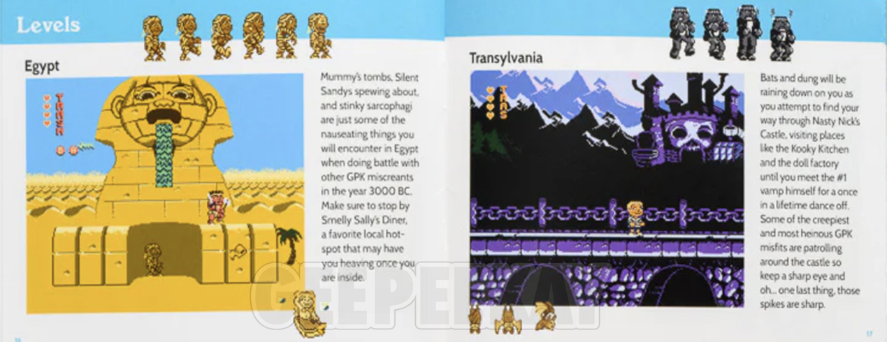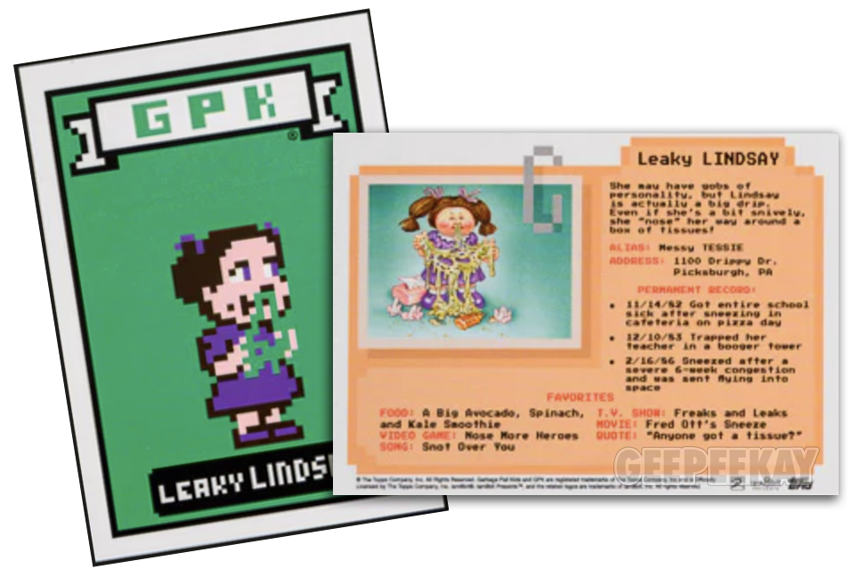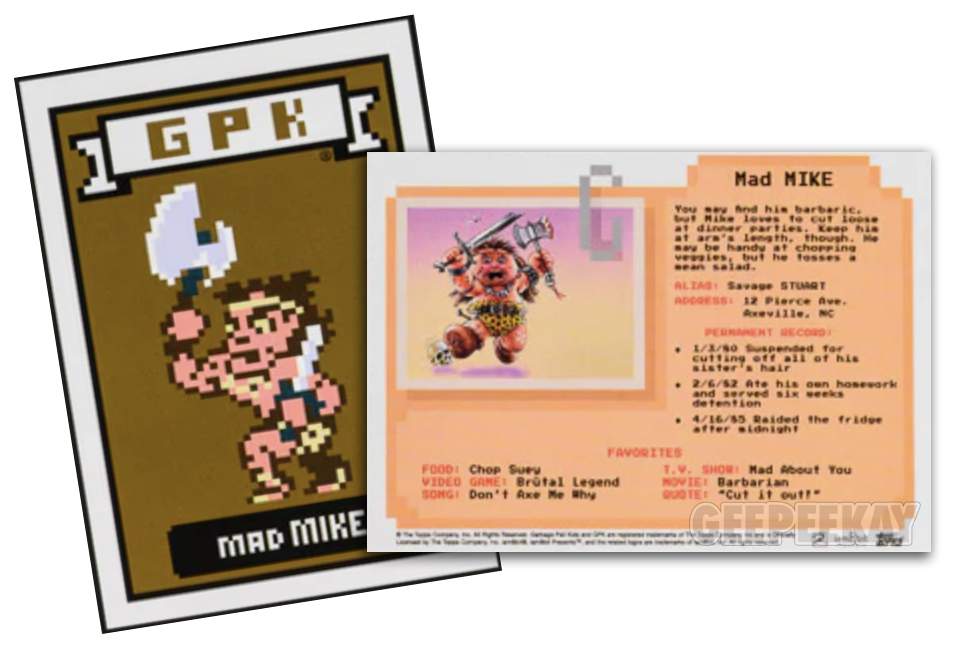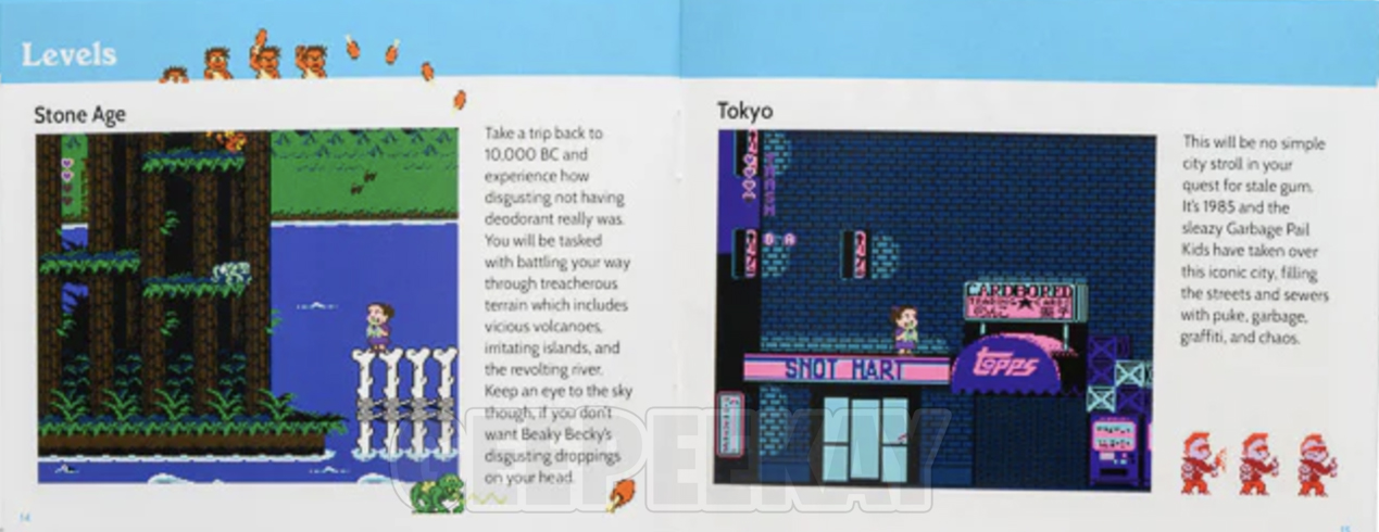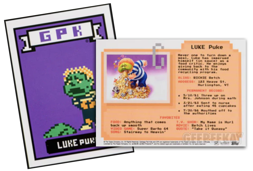 "In the 80s, the world was ruled by two things: the Nintendo Entertainment System and Garbage Pail Kids cards. These lovable, grossout monster children could be found in the lunchboxes of every latchkey kid, juvenile delinquent, rascal, and brat in your neighborhood. At the same time, Nintendo was taking over America with their first home video game console. So, it only made perfect sense when these two dominant forces of 80s pop culture came together… right? Right????? Well, here’s the thing: that never happened. UNTIL NOW!!"