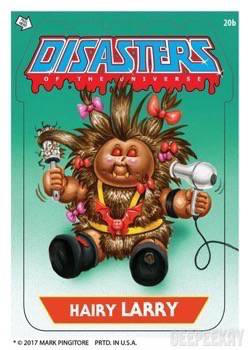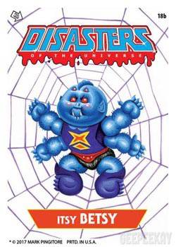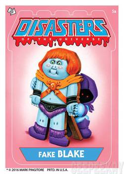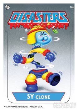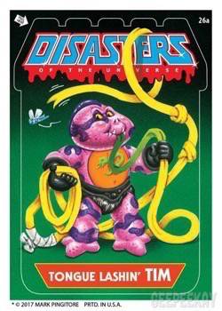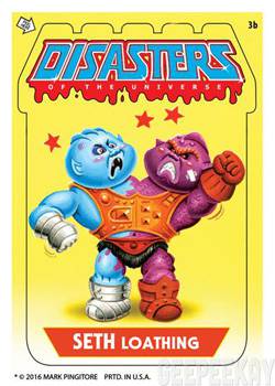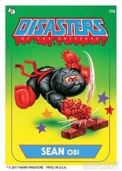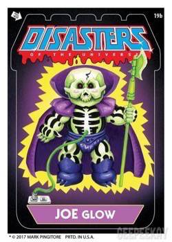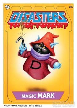 Released in 2016, Mark's first exclusive parody set sold out instantly and left collectors begging for more. In January 2017 Mark released a 2nd Printing of Series 1 (**). Below is a gallery of DISASTERS OF THE UNIVERSE SERIES 1: