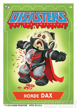 Below is a gallery for the DISASTERS OF THE UNIVERSE parody sets that have been created by MARK PINGITORE. To date there have been a total of three different releases in this series parodying He-Man and the Masters of the Universe