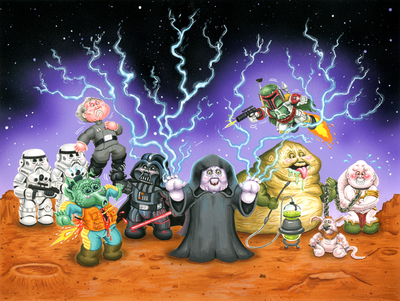 A long time ago...well actually it was just in November, 2017...Magic Marker Art released the STAR WARPED KIDS! At last, Mark gave collectors a mini-set of die-cut GPK-style stickers based on the best series of movies around: Star Wars!