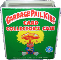 In 1985-1986, Placo released a number of Garbage Pail Kid themed items including this Card Case. This clam-shell case was intended to hold your GPK cards and keep them protected. It was decorated with the Adam Bomb image on the front as well as the name banners from 1st and 2nd Series characters on the back.