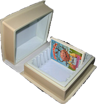 Once open, the case featured a section to store a number of cards. The plastic was separated into different sections that forced the collector to group their cards in stacks of (approximately) 15-20 cards.