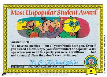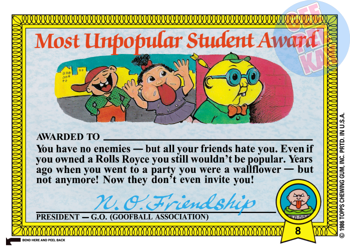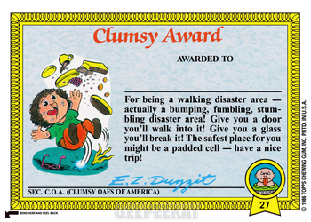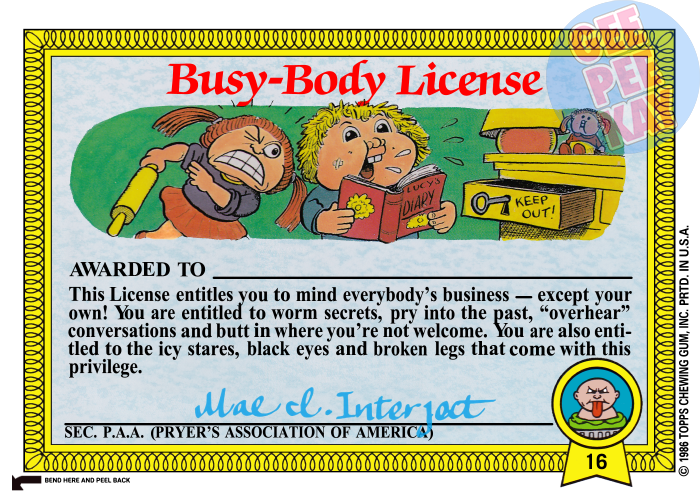 The GIANT Original Series 1 cards are all about nostalgia...and honestly there's nothing better than flipping through these big ol' cards from 1986. Sure, they might show their age a bit, but that's what it's all about! This 'Scanned' Gallery captures the complete set in all their aged-glory: