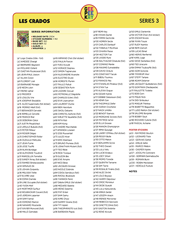 Artist/Collector Greg Treize was kind enough to share some checklists he created for the Les Crados releases...and after a little tweaking to make them match the format of my other GeePeeKay printable checklists, they are now available for everyone to print and use! Simply click on the images below to open the checklists in a new tab!