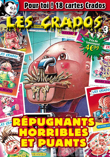 Over the years there have been dozens of books and magazines released in France containing Les Crados, however, to the surprise of almost everyone, new Les Crados magazines appeared on store shelves in France in April 2017. These magazines contained articles, games, and sheets of Les Crados trading cards
