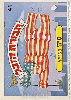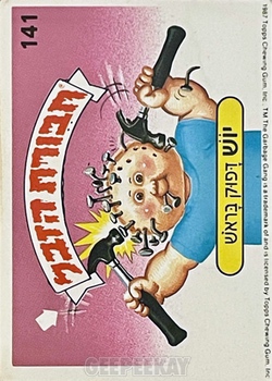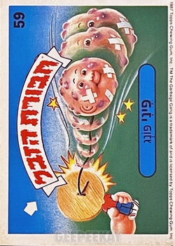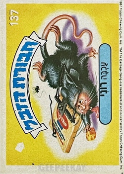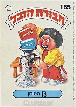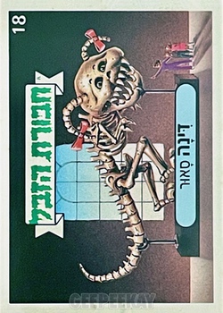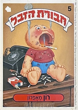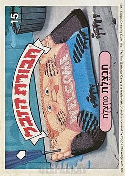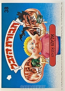 All the characters used in the 'HH' set were original Garbage Pail Kids images. However, the Israel release mixed things up a bit and used the 'back' images from the United States release on the front of some of their cards. The backs of these cards were just plain cardboard.