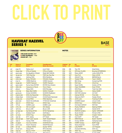 Foreign releases are extremely difficult to keep track of, but thankfully there is a detailed (printable!) checklist for Havurat Ha'Zevel Series 1! Click on the image below to open a PDF that includes translated names, transliterated names, OS character matches, and more! A huge shout out to the select few who helped make this possible! Keep your eyes peeled for S2 and S3 that are coming soon
