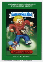 Sweden released their own version of Garbage Pail Kids under the familiar 'Garbage Pail Kids' banner. This rare release is limited to one series, and mimics the United States All-New Series 1.