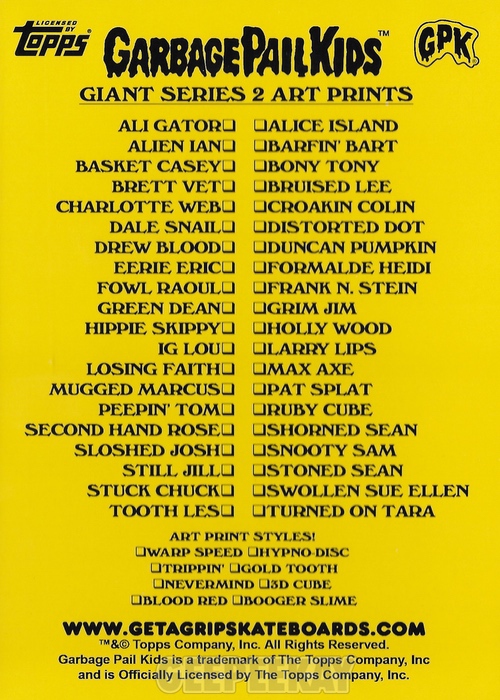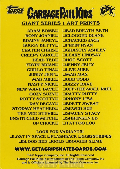 Get A Grip Skateboards released Giant Art Prints Series 1 on October 17, 2025. They sold out immediately, and ultimately became the highlight of the 40th Anniversary celebration of Garbage Pail Kids. Below is a detailed breakdown of the Series 1 release
