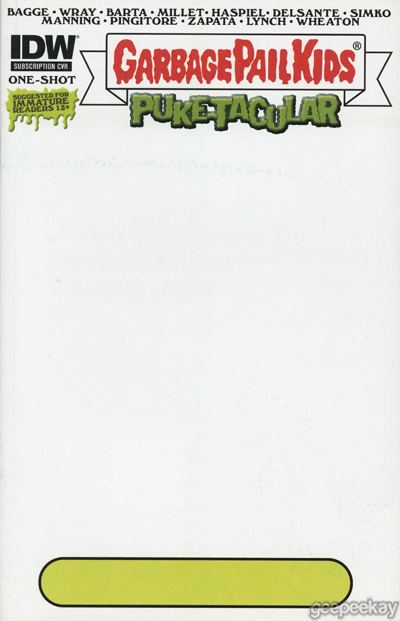 Over the next few months both IDW and Topps did a lot of promotion for the upcoming release. This page provides a comprehensive look at Garbage Pail Kids Issue 1 from advertising all the way to production. You can even flip through the entire comic book right here at geepeekay! Enjoy!