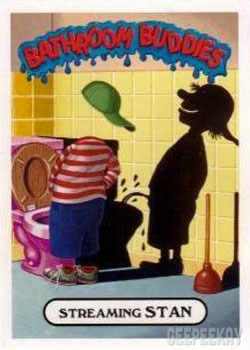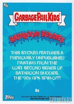 - INFORMATION: Although these two sets are not named in the traditional 'Bonus Card' format, the way they were distributed makes them extremely similar to previous series. The 8 card Gross Bears set features reprints of all the old artwork from Topps' Gross Bears Big Bad Buttons from the 80s and were found 3:WalMart (SE) Blaster Box. The 6 card Bathroom Buddies set also featured reprints of old Topps' artwork from the 80s and were found 3:Target (EA) Blaster Box