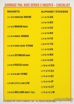 - INFORMATION: Garbage Pail Kids ANS5 is the first GPK release to include Magnet Cards. They were available in 1:6 packs