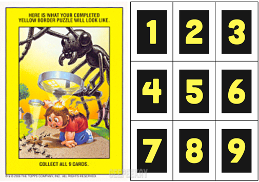 The completed Yellow Border Puzzle from All New Series 5 (above) is shown on the back of cards 2b Multi-Taskin' Ashton, 9a Furious George. To complete the Yellow Border Puzzle you will need the following nine cards: