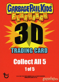 - INFORMATION: 3D cards were a rare insert in Garbage Pail Kids Flashback Series 3. Cards 1-4 were found in 1:12 packs, and Adam Boom was found in only 1:85 packs