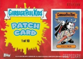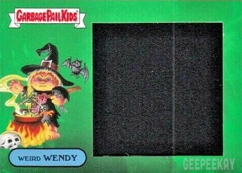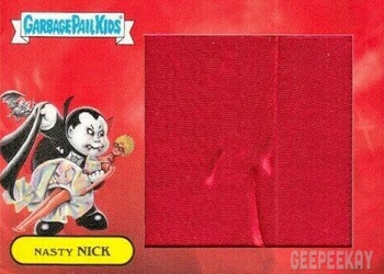- INFORMATION: For the Revenge of Oh, the Horror-ible Series there are a total of 10 different Faux Character Relic Cards. These are the replacement from the 'Patch' cards from previous releases, and are much thicker and made of different material. The reason for the thickness is they include a unique swatch of fabric that is supposed to have come from the character depicted on the card. These are reminiscent of some of the sports cards Topps releases that include a portion of a jersey, etc. These rare items were limited to a total of 50 per character, and were available in 1:69 Collector's Edition packs