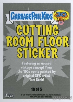- INFORMATION: The Cutting Room Floor subset of the 30th Anniversary Series features unused vintage concepts from the '80s newly painted by original GPK artist Tom Bunk!