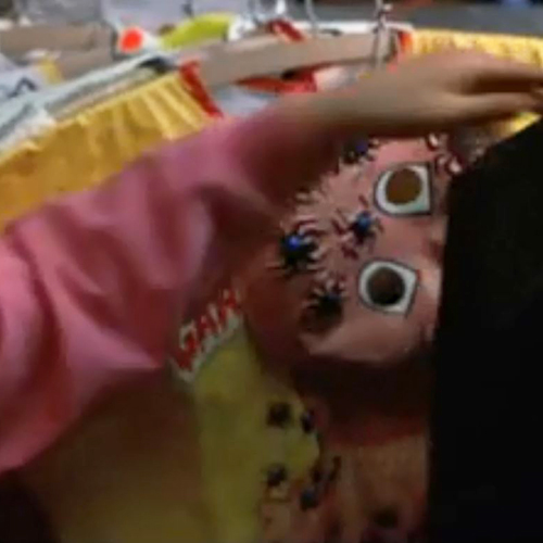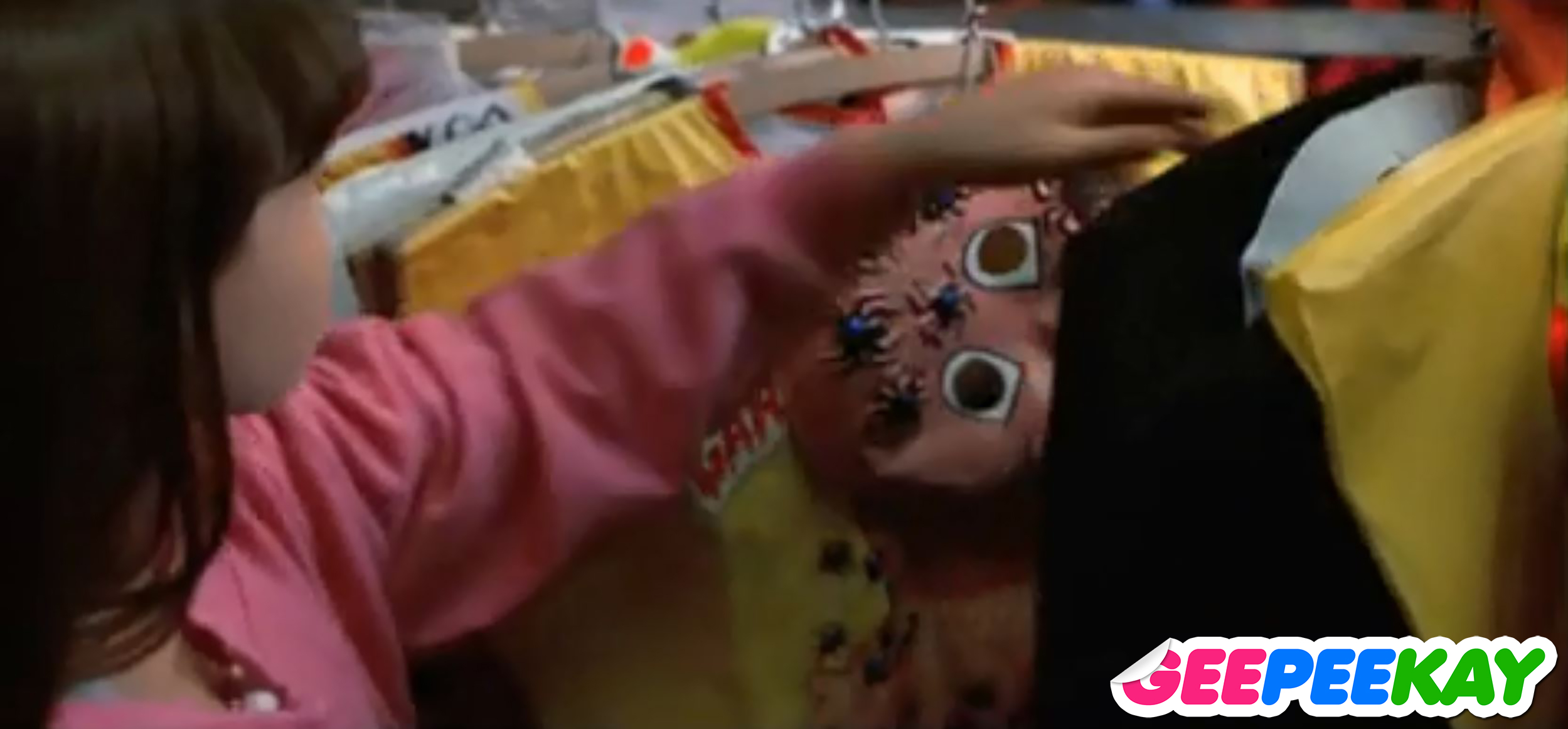 At around the 10min mark a girl is seen browsing a store for halloween costumes. If you look closely you will see a Bugged Bert costume
